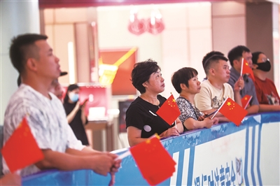 在石狮服装城北D四楼会议室,石狮服装轻纺名城运营有限公司、石狮服装城商业联合会联合组织市场党员和商户代表收看直播。随着国歌奏响、国旗升起,市场商户代表顿时感到热血沸腾、激情澎湃,全体起立齐唱国歌。石狮服装城商户郭金锭表示,此次大会极大地振奋了民族精神,作为一名市场商户,将立足石狮产业特色,做好产品创新与品质提升,诚信经营,积极拓展市场渠道,主动融入国家发展大局,为石狮服装专业市场繁荣和产业发展尽一份力。