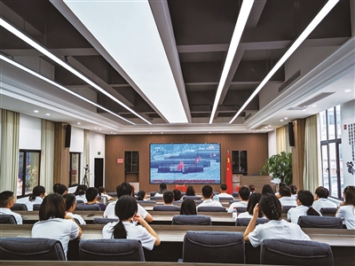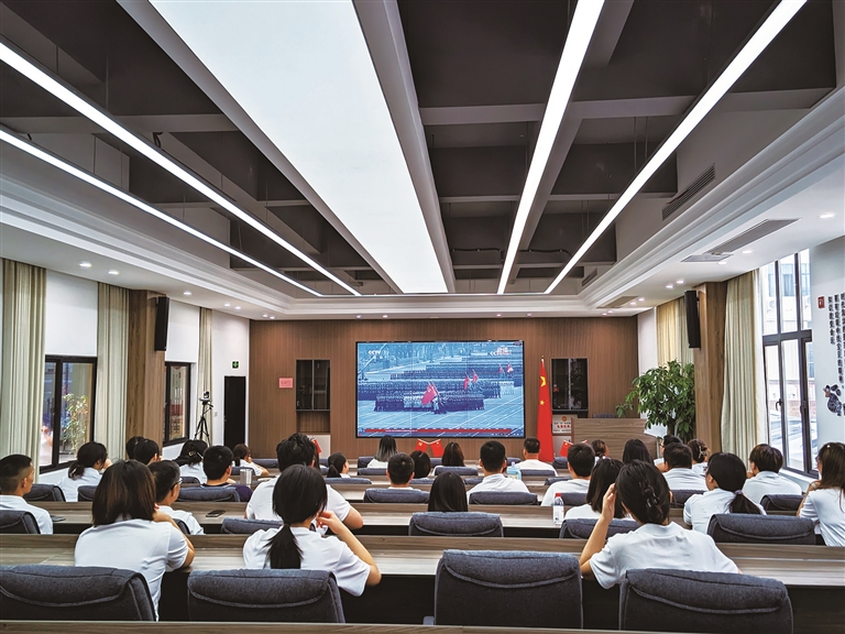 在石狮市石光中学(集团)第三中学的党建室与各教室内,师生们同步聚焦屏幕,共同收看大会现场直播。直播结束后,学生沈曲歌十分感慨:“观看大会时,我心中满是对国家繁荣强大的自豪,更深刻体会到,传承伟大抗战精神、助力民族复兴,不是一句口号,而是我们这代青少年必须扛起的责任。未来,我会把这份爱国之心、强国之志,融入日常的每一次学习、每一次实践中。”