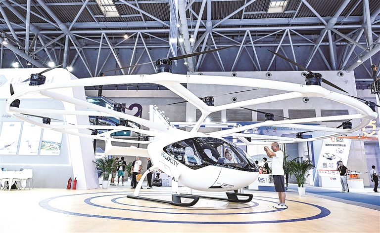 9月5日,观众在2025世界智能产业博览会上参观电动垂直起降飞行器。9月5日,2025世界智能产业博览会在重庆开幕。本届智博会设置智能网联新能源汽车、数字城市、智能机器人、智能居家、低空经济五大专业板块,通过专业化展陈与沉浸式体验相结合的方式,全面展现智能产业发展新特征、新热点、新图景。同时,本届智博会还注重技术与场景融合创新,立体呈现低空无人机配送、多场景端到端辅助驾驶、智能机器人人机互动等应用场景,引导观众沉浸式感受智能科技重构生活场景的独特魅力,展现我国智能产业的生机活力和广阔前景。(新华)