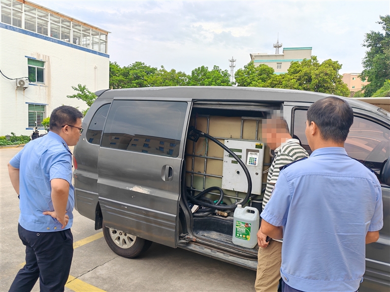 执法人员上前检查,打开面包车门,一股浓烈的柴油味扑面而来,车厢内竟藏着一套完整的非法加油设备,油罐、加油机、加油枪一应俱全,俨然一个移动的“黑加油站”。面对执法人员的询问,面包车司机神色慌张、闪烁其词,无法提供合法经营手续。执法人员当即依法查扣车辆与油品,控制涉事司机,并对油品质量展开专业检测。