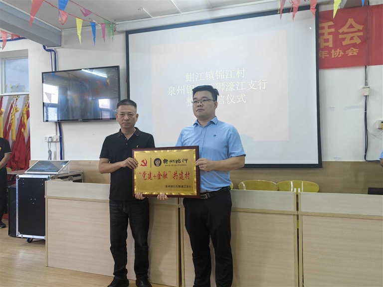仪式上,泉州银行石狮濠江支行负责人与锦江村党总支负责人共同签署战略合作协议。根据协议,泉州银行石狮濠江支行将为锦江村提供整体性的授信支持,旨在精准对接村民在生产、经营及消费等方面的多元化金融需求,切实解决融资难、融资贵问题,助力村民创业致富和村集体经济发展壮大。签约后,泉州银行石狮濠江支行负责人还向锦江村党总支负责人现场颁授“阳光信用示范村”牌匾。