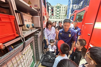 活动中,消防员带领亲子团近距离接触消防车辆、器材装备,详细讲解各类消防器材的功能及使用方法,并现场演示灭火器操作、水带铺设等实用技能。针对儿童消防安全教育,消防员特别设置互动体验环节,孩子们在消防员的指导下试穿灭火防护服、体验操作高压水枪出水,通过沉浸式体验提升应急避险能力。此外,消防员结合夏季火灾特点,通过典型案例剖析、消防知识问答等形式,向亲子团普及家庭防火、电动车充电安全、高层建筑逃生等实用知识,提醒大家注意用火用电安全,及时消除身边隐患,切实提高其消防安全意识和自防自救能力。