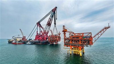 9月8日,垦利6-1油田10-1北区块Ⅱ期开发项目油气平台在渤海海域完成海上安装(无人机照片)。9月8日,随着重达4700吨的油气平台上部组块在渤海南部海域精准就位,垦利6-1油田10-1北区块Ⅱ期开发项目建设工作取得重要进展,渤海亿吨级油田又一油气平台完成海上安装。垦利6-1油田位于渤海南部海域,石油探明地质储量超1亿吨,是我国在渤海莱北低凸起浅层勘探领域发现的首个亿吨级岩性大型油田。(新华)