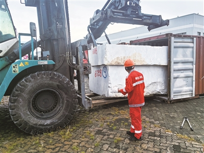 本报讯 近期,石湖港成功引入希腊大理石业务,客户通过国际物流渠道,将这批大理石从希腊运抵泉州,并顺利通关至石湖港B型保税物流区进行保税仓储和中转,这也是石湖港首次开展希腊大理石国际中转保税业务。