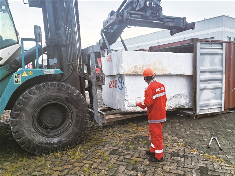 据悉,石湖港B型保税物流区作为泉州港的重要组成部分,拥有完善的保税仓储功能与海关监管设施。此次大理石国际中转保税业务的顺利开展,得益于B保的优越条件和石狮海关的高效监管,确保货物的高效、安全通关。