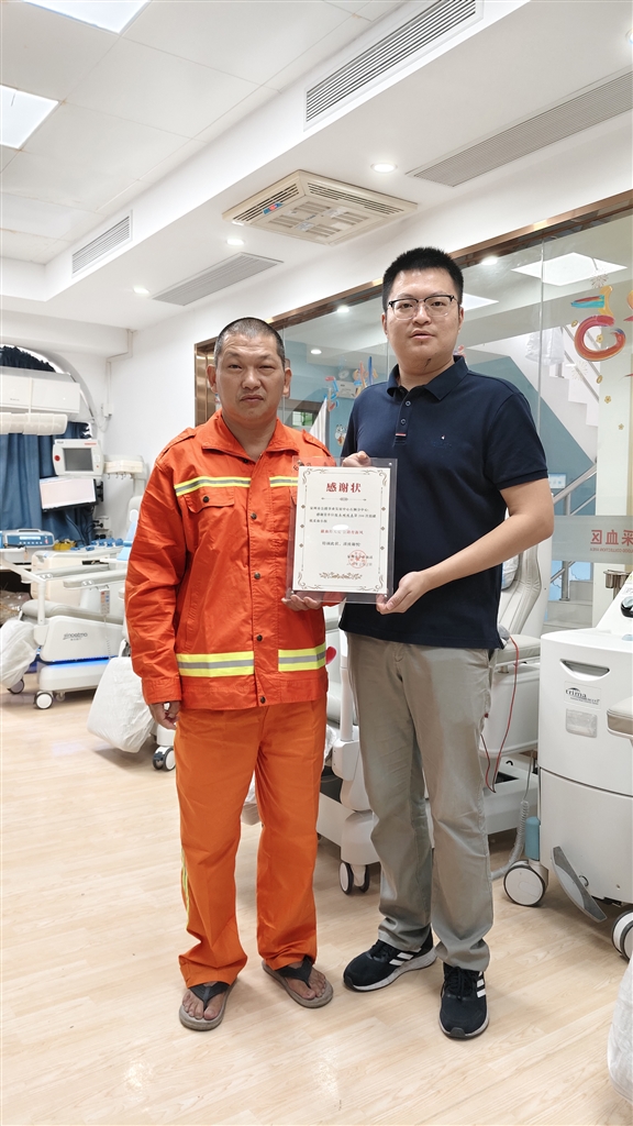 本报讯 完成200次机采血小板捐献、捐献总量高达64300毫升——石狮公路人谢永明用16年的坚持无偿献血,书写着关于爱与奉献的故事。9月10日,记者获悉,泉州市中心血站日前特地给石狮公路分中心和谢永明分别送上了感谢状。