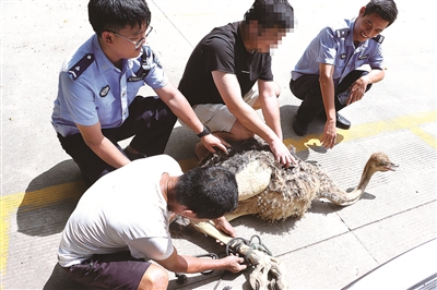 本报讯 “警察同志,我家的鸵鸟不见了……”9月9日上午,锦尚派出所接到杨先生紧急求助,称自家养殖在围栏内的鸵鸟“离家出走”,多番寻找无果后只好报警求助。