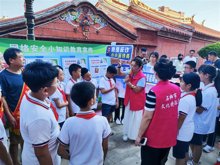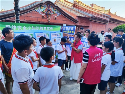 本报讯 9月14日下午,石狮市湖滨街道2025年“网络安全始于心,防范意识践于行——我是一名小小宣传员”主题宣传活动在曾坑蓉园四端堂启动。