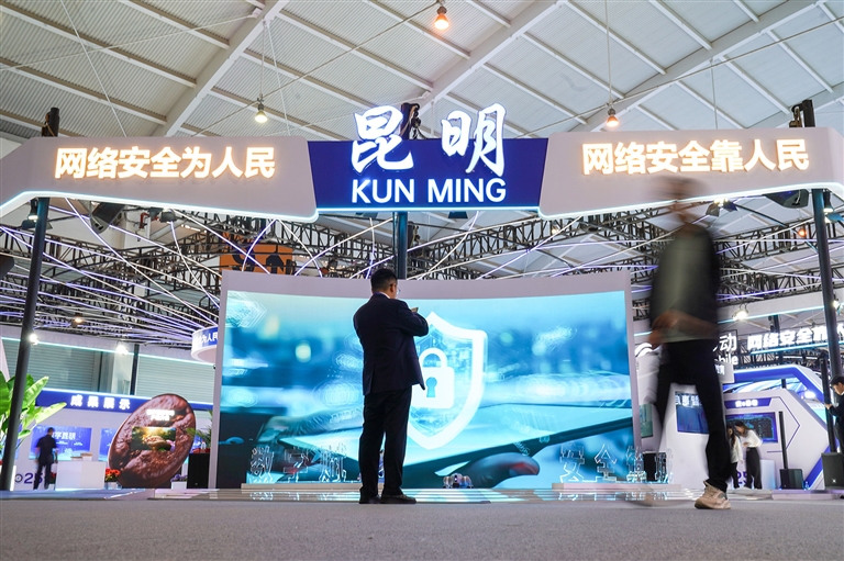9月15日,人们在云南昆明举行的2025年国家网络安全宣传周配套活动——网络安全博览会暨网络安全产品和服务国际推介会上参观。9月15日,以“网络安全为人民,网络安全靠人民——以高水平安全守护高质量发展”为主题的2025年国家网络安全宣传周在云南昆明开幕。(新华)