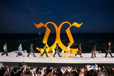 “音乐同样承担起叙事的重任。”本次活动的总导演肖向荣曾担任纪念中国人民抗日战争暨世界反法西斯战争胜利80周年大会服务保障和广场活动指挥部广场活动部副部长。他介绍,此次将闽南传统乐器与现代电子音效相融,对《世界第一等》《海阔天空》等经典曲目进行重新编曲,既唤起闽南人的共同记忆,也注入深厚的家国情怀。吕颂贤、胡杏儿等港星与王琳凯、毕雯珺等新生代偶像同台亮相,跨越代际的阵容进一步强化了“共潮生”的主题。灯光则以冷暖交替的笔触,勾勒出海洋的深邃与T台的张力。日落时分启幕,天光与人工光影交织,仿佛时间在此刻静止。