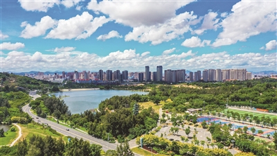 连日来,我市持续迎来晴好天气,蓝天白云成为城市上空的“常客”。在这样的好天气的映衬下,澄澈如洗的蓝天、形态各异的白云,与波光粼粼的水面、错落有致的楼宇以及绿意盎然的植被相互交融,蜿蜒道路串起自然与都市,生态与繁华共生,绘就石狮宜居宜业宜游的美好模样。图为9月16日,记者航拍下的峡谷旅游路景观,远处市区建筑群展现别样美感,尽显石狮魅力。(记者 颜华杰)