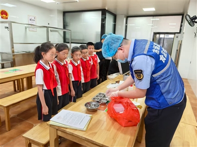 该所工作人员在福民中心小学、鸿山中心幼儿园等学校的食堂设快检点,对蔬菜、肉类等食材及师生餐具开展农残、硼砂、洁净度等项目快检;同步讲解食安常识,提升校园群体风险防范与辨别能力。