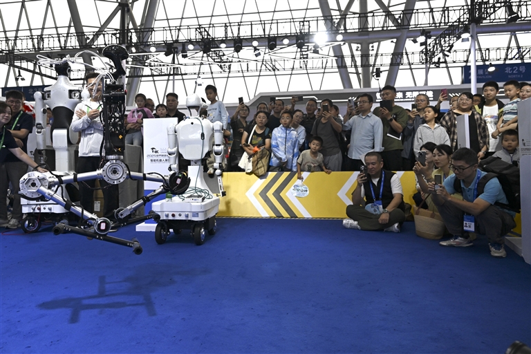 9月20日,一款跳高机器人在2025世界制造业大会上为观众表演跳高。9月20日至23日,2025世界制造业大会在安徽省合肥市举行。在大会上,“智能机器人展区”成为最热门的打卡地,吸引了大批观众前来参观。机器人乐队、机器人搬运工、机器人服务员……各种类型的机器人大显身手,为人们展示未来生活的无限可能。(新华)