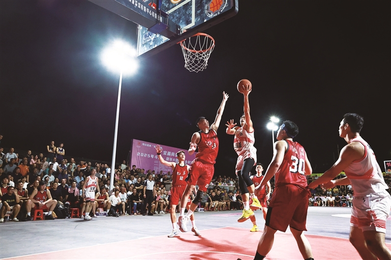 9月16日晚,2025年“斗阵·泉BA”暨和美乡村篮球大赛总决赛举行,石狮宝盖队战胜晋江池店队,赢得总冠军,双方获得全省2025年“村BA”的参赛资格。(记者 王国良 郭雅霞)