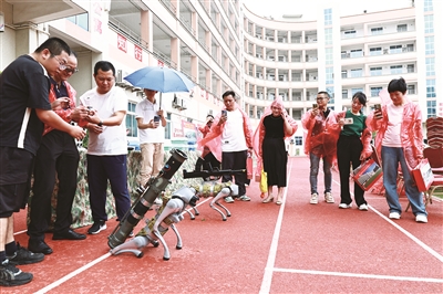 启动仪式上,“步坦协同与智能机器狗联合战术演练”精彩呈现。智能机器狗凭借激光雷达、红外热成像、四足仿生设计等技术,在“复杂地形”灵活穿梭,展现山地丛林、城市巷战等场景下的作战能力。此次演练,既直观呈现前沿科技,又为研学教育注入国防与科技融合新内涵,助力青少年科技素养与国防意识培养。