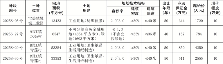 地块规划控制指标按照有关规划文件执行,详见本次挂牌出让文件。2025S-05号、2025S-29号、2025S-30号地块挂牌出让后,受让宗地范围内不得建造商业店面、成套住宅、专家楼、宾馆、招待所和培训中心等非生产性设施。项目要求符合地块产业类型行业和土地使用条件要求,并符合环保产业政策和环境功能区域要求。申请人经营范围应符合项目相应产业类型。2025S-27号商服地块建成后,由竞得人整体自持、不可分割销售转让。
