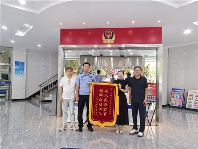 本报讯 9月25日上午,石狮市珠宝协会代表将一面写有“为人民办实事、做群众贴心人”字样的锦旗送到湖滨派出所,对该所民警忠诚履职、尽职尽责、高能高效的工作和帮助表示感谢。