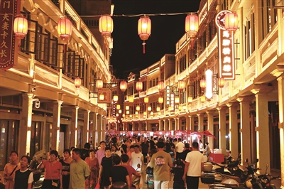 本报讯 10月1日晚,华灯初上,石狮凤里街道八卦街历史文化街区人潮涌动,处处洋溢着喜庆祥和的节日气氛。“逛古街·忆乡愁·品烟火”2025年八卦街国庆中秋消费季暨第四届民俗文化嘉年华活动正火热进行,丰富多彩的活动吸引众多市民游客前来体验。