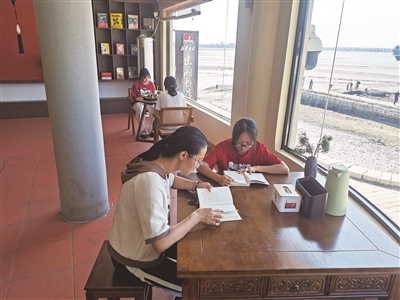本报讯 10月3日下午,世界文化遗产点石湖码头林銮渡广场的“宋·潮”书店热闹非凡,市民、游客陆续走进书店参观、选购、阅读书籍,既解除假日期间游客旅途中的疲劳,又能了解更多泉州世遗景点及海上丝绸之路相关文化知识。