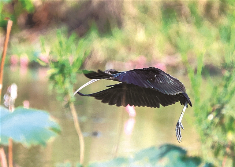 国家一级保护动物彩鹮在石狮湿地公园“过中秋”(杨思盾/图)