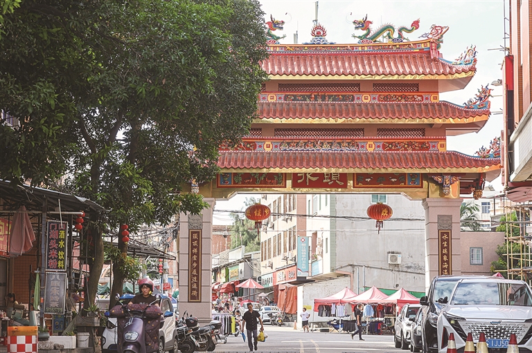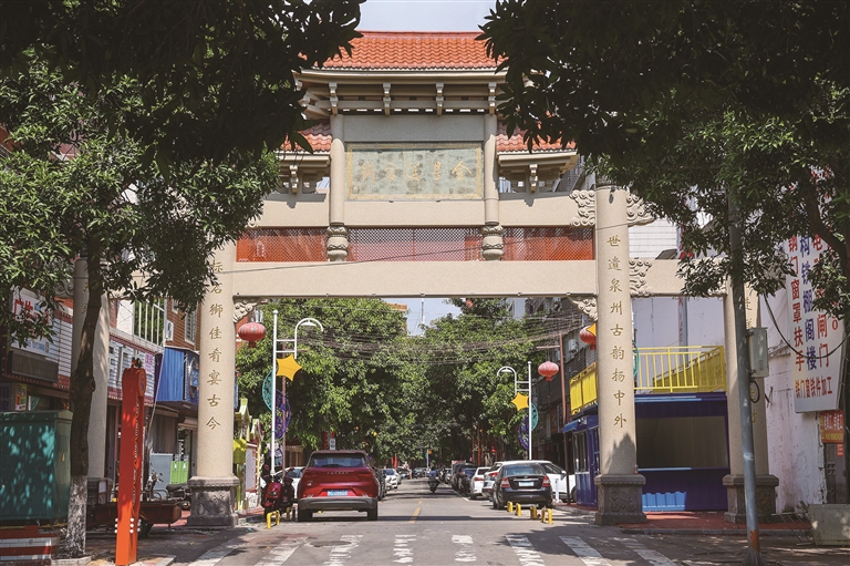 在石狮,这样带着厚重岁月的牌坊并不少见。就像铺锦村龟湖老街的“宝盖铺锦进士坊”,建于明嘉靖二十四年(1545),历经近五百年风雨,至今仍稳稳地立在街巷间。还有八卦街的“南邦寄重”坊(也称施琅坊)建于清康熙年间,历经300余年风雨,这座牌坊曾因城市建设被砌入民房墙,2011年被保护性拆卸,2021年移建于八卦街凤里庵入口广场,成为石狮重要的涉台文物与文化地标。