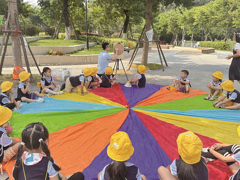 石狮漫童大地幼儿园园长胡新华表示,带孩子走进自然、亲近自然,能够让孩子从小与自然建立深层情感联结,萌发对自然的热爱与敬畏;希望通过沉浸式体验,让孩子在自然的浸润下,激发好奇心与探究精神,培养团队协作与解决问题的能力,获得多元学习与发展。