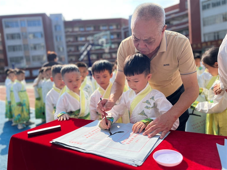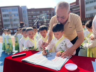 本报讯 前不久,古洋小学举办了一场“开笔启智,礼润人生”主题活动,前廊村关工委常务副主任、“五老”代表蔡祖沛受邀入校,用实际行动为孩子们的成长礼注入温暖力量。