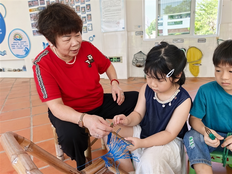 此次“五老”入校授艺活动,不仅让幼儿零距离接触传统织渔网技艺,更以实践形式培养了孩子们的动手能力与专注力。