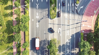 学府路新施划交通导流线,有序分流 (颜华杰/图)
