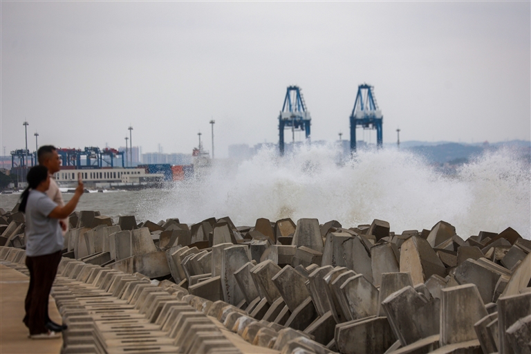 气象部门提醒市民及游客:沿海地区风力较强,海边游玩请注意安全。(记者 颜华杰)