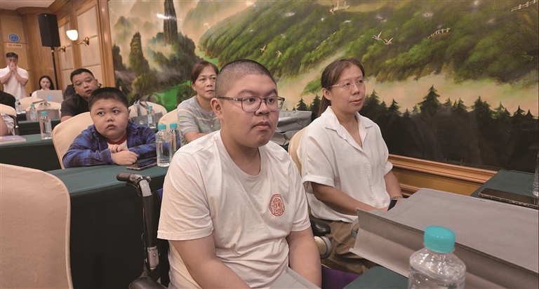 “是承谕,鼓舞我们大胆走出来!”当日发布会上,家住福州仓山区的DMD患者雷云皓和妈妈提前一个半小时就抵达会场。云皓妈妈告诉记者,当年孩子确诊DMD,她也曾焦虑与迷茫,不知孩子的未来在何方。直到后来通过DMD社群认识了承谕,他阳光向上的模样,给了她很大的支持与力量。云皓妈妈坦言,正是吴承谕的以身示范,让她和孩子有勇气走向外界。此次得知吴承谕新书发布会办在福州,云皓妈妈特意给正就读高二的云皓请了假,专程带孩子来到现场见证这一重要时刻。