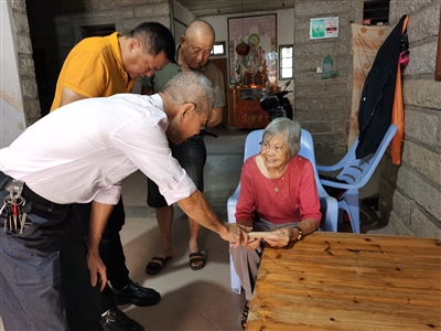 本报讯 10月21日,石狮市老区建设促进会副会长兼秘书长蔡放鸣带队,联合市民政局代表,先后前往深埕、沙堤等7个村(社区),为10名革命“五老”遗偶送去2025年度荣誉津贴及2026年度城乡医保费用。