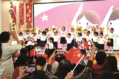 活动伊始,师生们在幼儿园门口热情迎接老人,并为每位老人佩戴上一朵象征吉祥如意的小红花,传递浓浓敬老情。汇演中,孩子们精神饱满,以班级为单位依次登台,用稚嫩而真挚的童声合唱了《党是太阳我是花》《我是勇敢小兵兵》《祖国是我家》《红船新一代》等10首充满爱国情怀的歌曲,表达对祖国的热爱与祝福。老人们看得入神,不时响起热烈掌声。