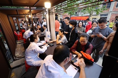 此次活动通过市集化、体验式、互动型的设计,让千年中医药文化走出古籍与诊室,以更亲民、生动、实用的姿态融入市井烟火,走近寻常百姓。现场,集印馈膳轩、茶饮防未铺、本草趣知亭、体辨颐养阁、古技廉韵坊五大主题区次第铺开,市民穿梭其间,学习健康知识、认识食疗方剂、品尝功效茶饮、制作古法香囊,收获个性化养生建议。