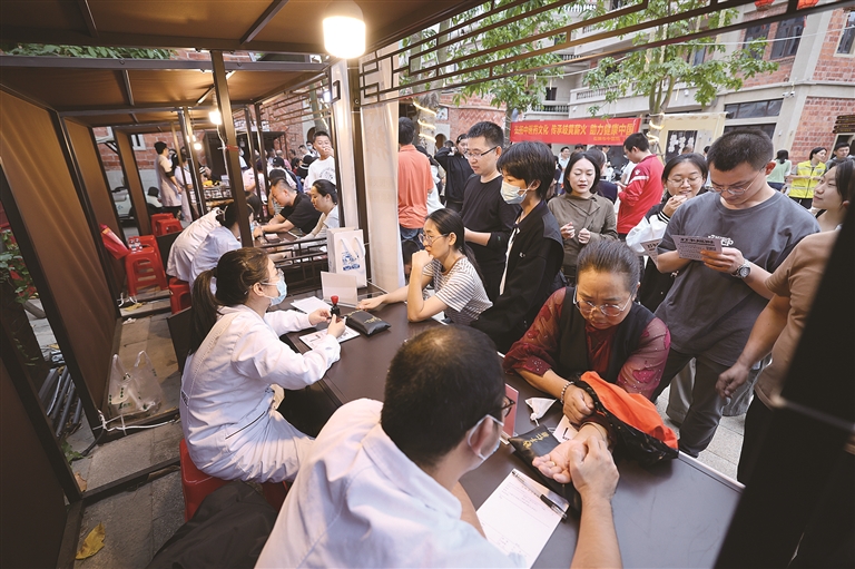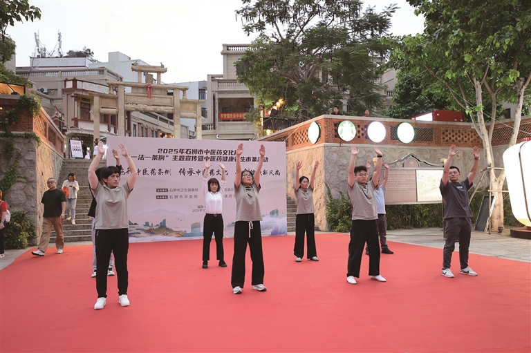 活动间隙,舒缓的音乐萦绕耳畔,医护人员还带领市民习练起古法养生功法“八段锦”,于一招一式中舒展筋骨,调息养气。古街之上,传统养生韵味与市井烟火气息交融,构成一幅鲜活的健康生活图景。