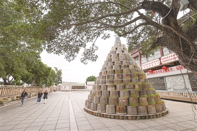 要是想一次性见着各个年代的井沿印记,玉湖豆腐厂便是最好的去处。厂区角落的陈列区里,不同年代的井沿静默排开。那座用百余块老井沿垒起的“井沿塔”,锥形塔身层层叠叠,每一块井沿都带着独特的印记,塔缝里钻出的青草,给这段“井的历史”平添了抹生机。