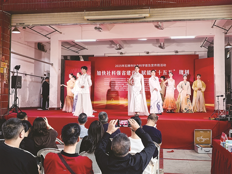 本报讯 日前,一场集文化展示、科普惠民、技艺传承于一体的文化盛宴——2025年石狮市社会科学普及宣传周分会场活动,在宝盖镇铺锦村文化活动中心举行。作为协办单位,泉州纺织服装职业学院组织师生参与本次活动,为观众带来海丝文化时装秀和闽绣表演。