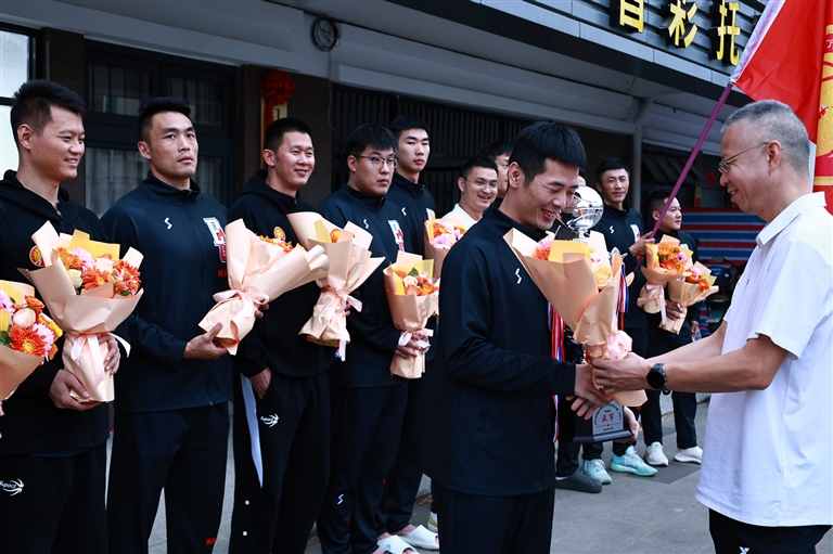 本报讯 11月4日下午,石狮体育场洋溢着热烈而温馨的气氛。出征全省第三届“村BA”的石狮宝盖篮球队载誉凯旋,石狮市文体旅游局、宝盖镇政府、宝盖篮协相关负责人及亲友代表们早早在此等候,用掌声和鲜花迎接队员们归来。