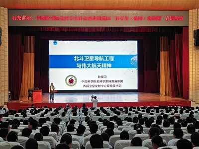 在石狮市石光中学的宣讲现场,西昌卫星发射中心原党委书记孙保卫以《北斗卫星导航系统的前世今生与航天精神》为题,结合自身多次参与载人航天飞行控制、卫星发射任务的亲身经历,讲述中国航天四大里程碑式成果,以及北斗系统从无到有、从弱到强的发展历程,带领学子们从一个个攻坚克难的航天故事中,感悟伟大的航天精神。