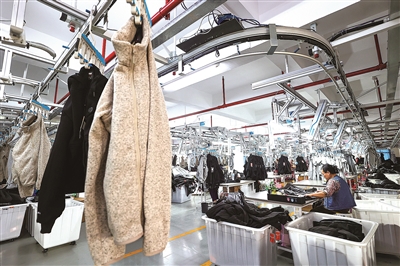 数据在云端实时交汇,智能加热羽绒服、马甲等半成品在空中吊挂系统中精准流转,沿轨道输送到各工位……11月1日,我再次走进位于石狮市兴园二路21号的福建一笔成服饰科技有限公司5G智能生产车间看到,智能生产线上一派繁忙。缝纫、整烫、质检、包装……工序环环相扣,成品陆续装车发往国内外市场。