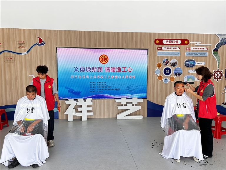本报讯 11月6日,祥芝渔港海上共享职工之家温馨开展的“义剪焕新颜,情暖渔工心”月度爱心义剪活动如期而至,志愿者理发师们带着专业工具走进祥芝渔港海上共享职工之家,为坚守在一线的渔工们送上贴心服务。活动吸引10余名渔工参加。