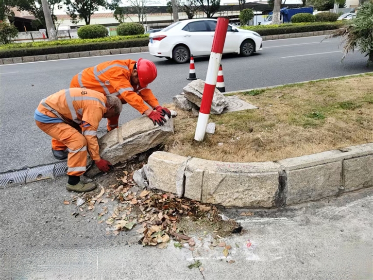 市民致电12345反映,灵秀镇狮城大道石狮八中附近路段,有多块绿化带防护石损坏,影响交通出行。 部门回复:市城管执法局表示,收到反馈后,已第一时间安排园林绿化工人进行现场处置,对倾倒的石材进行维护清理。后续将加强巡查,确保道路安全通畅。