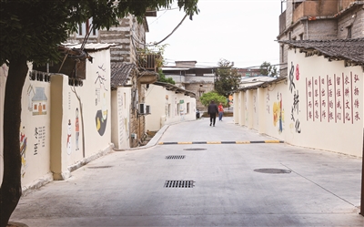 “这条村道原是一条断头路,去年打通后,将村民聚集区与村委会办公楼连成一条线,村民出行与办事更加方便。”杆头村党支部书记、村委会主任施少东介绍说。在解决村民出行难题之后,杆头村“两委”班子研究决定,将路两侧的墙面利用起来,赋予墙面新的功能。