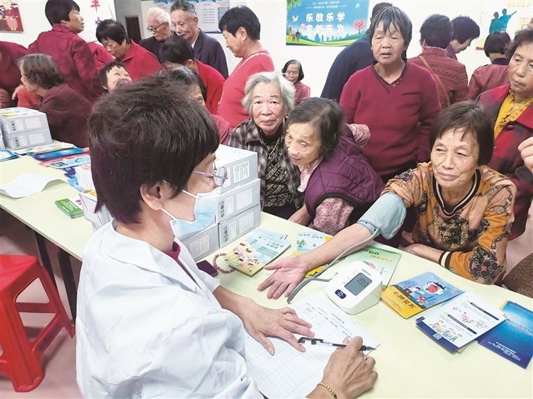 本报讯 11月11日,在第19个联合国糖尿病日到来之际,蚶江镇卫生院、古山村、古山村关工委在古山村新时代文明实践站联合举办了一场以“糖尿病与幸福感”为主题的宣传义诊活动,并同步启动了生活垃圾分类“万人志愿者”行动,吸引了众多村民积极参与。