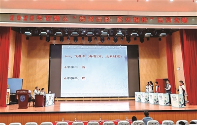 作为石狮市推进“诗词进校园”的重要载体,本次大赛自启动以来得到全市各中小学积极响应,通过班级赛、校级赛层层选拔,让诗词从课本走向生活,让学生在潜移默化中亲近经典、涵养气质。本次大赛分设小学组、中学组和教师组三个组别,设置必答题、抢答题、飞花令、诗词释义、看图猜诗等环节,题型涵盖唐诗宋词。赛场上,选手们沉着应答、妙句频出,“春风又绿江南岸”的温婉与“大江东去”的豪迈在赛场上交织。飞花令环节中,选手们围绕“碧”“飞”“愁”等关键字展开交锋,展现出扎实的诗词功底与敏捷的思辨能力,现场掌声不断。经过多轮激烈角逐,大赛最终评选出个人一、二、三等奖。(记者 许小雄)