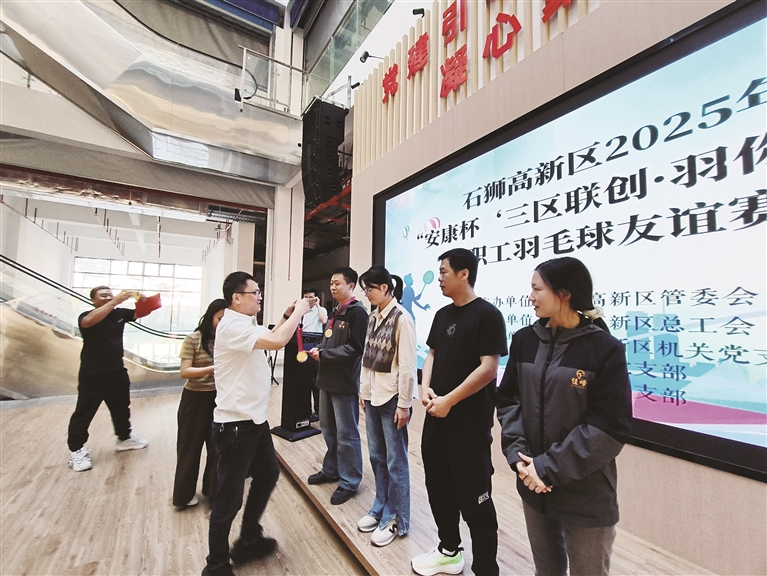 本报讯 日前,石狮高新区管委会在“党建+”邻里中心举行安康杯“三区联创·羽你同行”职工羽毛球赛颁奖仪式,为获得优秀组织奖和冠亚季军的单位、个人颁奖。