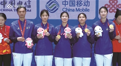 本报讯 11月20日,在第十五届全运会击剑女子花剑团体决赛中,石狮籍名将林绮雯与福建队队友焦恩祺、陈情缘、黄芊芊奋勇拼搏,凭借默契配合与精湛技艺一路过关斩将,最终成功登顶,这是石狮健儿在本届全运会收获的首枚金牌。