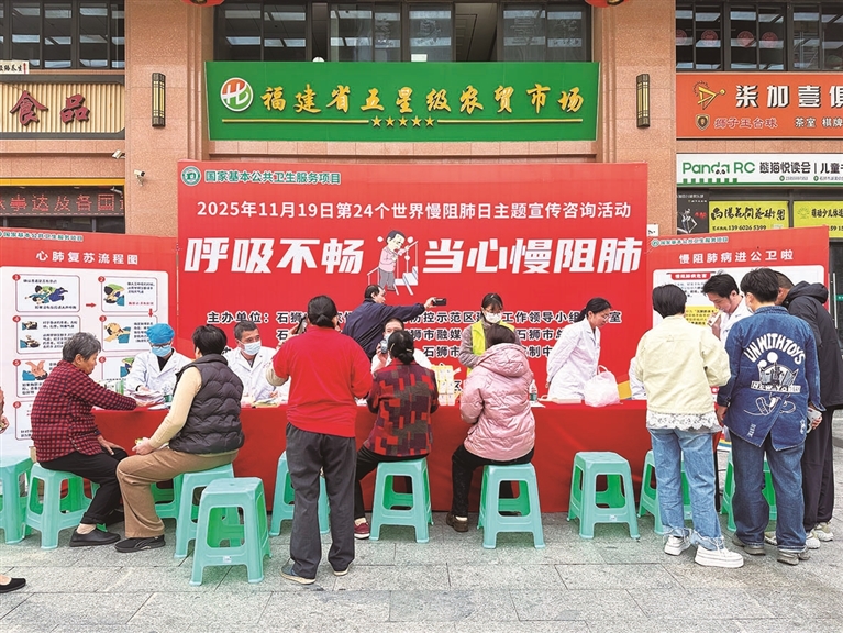 11月19日,石狮市“世界慢阻肺日”主题宣传活动在湖滨综合市场举行,将便捷医疗服务送到群众“家门口”。