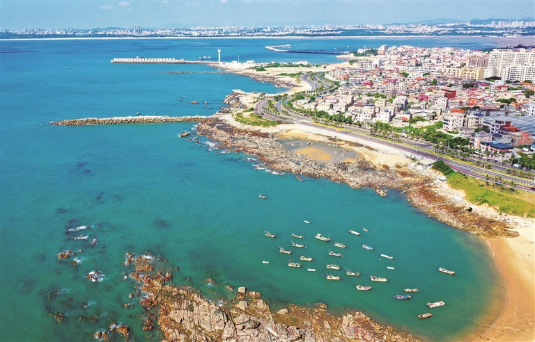 从永宁古卫城到将军山,海在这里画出一个“大弯”,蜿蜒出十里海岸线。2018年10月,红塔湾旅游公路全线贯通;2021年12月,永宁外线(红塔湾旅游路至梅宁路)全线贯通;2021年10月,石狮十里黄金海岸观光道建成;2023年7月,石狮十里黄金海岸红塔湾旅游区开业……现在,这道“弯”有了一个好听的名字——十里黄金海岸,成为石狮68公里海岸线最亮丽的名片。