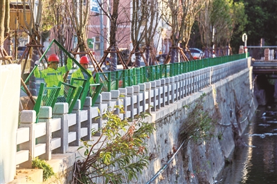 本报讯 11月25日,记者在龟湖公园东片区看到,在永兴路龟湖溪(宋塘路—香江路),施工人员正在对龟湖溪两侧进行隔离护栏安装作业,为周边群众出行保驾护航。